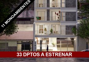 33 departamentos a estrenar. Son 22 departamentos de 2 ambientes y 11 departamentos mono ambiente. Sobre lote de 312 m2.